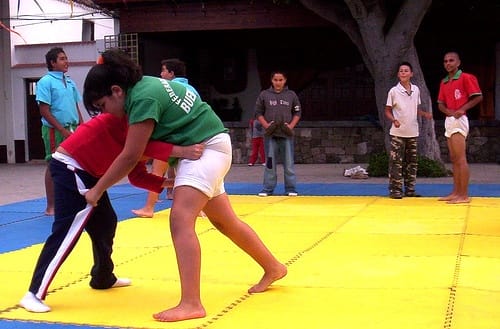 Usualmente este deporte se juega en equipos de 12 luchadores y gana el que tenga más puntos, que son conseguidos cada vez que se vence a un contrincante, y es una práctica en la que son más importantes la técnica y la habilidad del jugador sobre su fuerza, por lo que es usual que los de menor tamaño consigan el triunfo.
