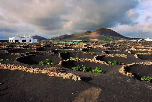 Por otra parte aquí descubrirás que, a causa de que en Lanzarote llueve muy poco, sus habitantes han tenido que desarrollar cultivos sobre terrenos de ceniza buscando también formas de evitar los daños que produce el constante viento que sopla sobre el terreno.